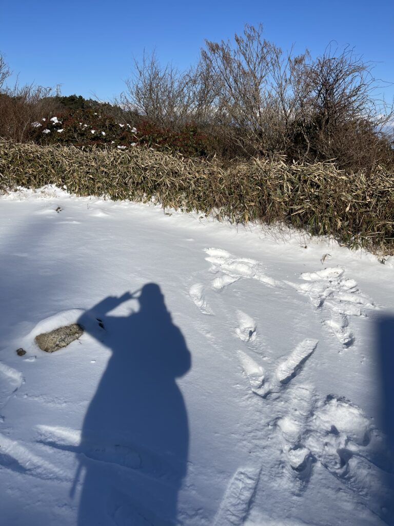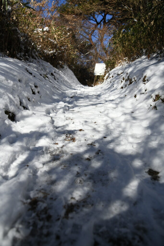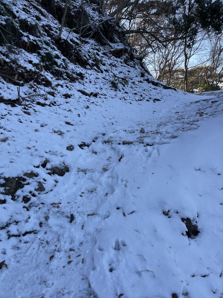 いけましたが、下山は滑るので(2回尻もちつきました。)